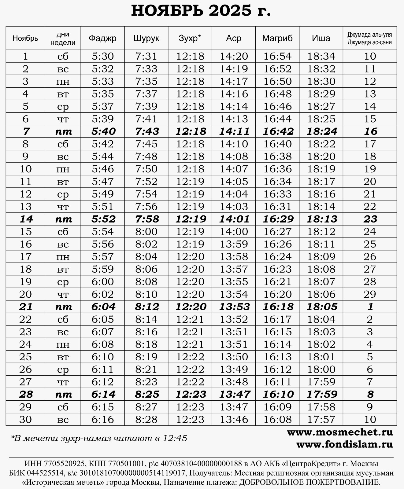 Мухаммад (да благословит его Аллах и приветствует) отметил самый важный день в календаре словами: "Пятница – это главный дней! Пятница является более важной, чем Ураза-байрам и Курбан-байрам".